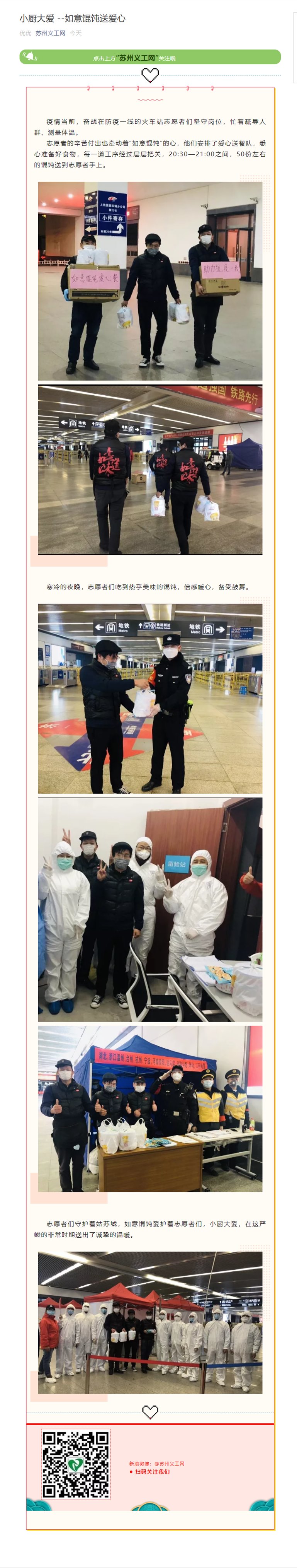 志愿者們守護(hù)著姑蘇城,如意餛飩愛護(hù)著志愿者們,小廚大愛,在這嚴(yán)峻的非常時(shí)期送出了誠(chéng)摯的溫暖。