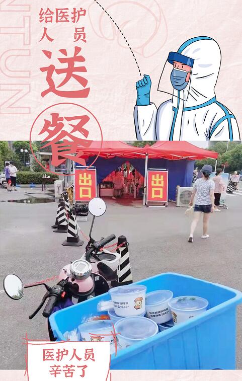 頂著烈日,騎著小電驢,也要第一時間把免費餛飩給醫護人員送去