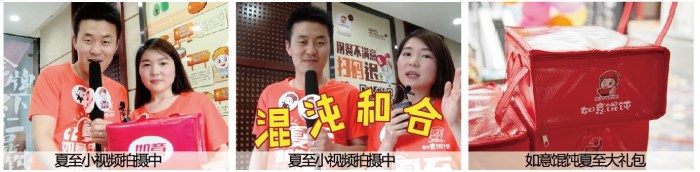 今年夏至,如意餛飩為顧客準備了生餛飩大禮包,顧客能以優惠的價格把如意餛飩帶回家,和家人一起快快樂樂過夏至。同時,如意的員工也給門店準備了夏至小禮物:由員工自編自導自演的夏至小視頻,小視頻中不僅介紹了夏至的由來,還溫馨的告訴顧客生餛飩帶回家的注意事項。