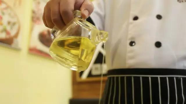 ④開始進入煎餛飩階段,首先在平底鍋倒入適量的色拉油,量不需要多,能鋪平鍋底就行