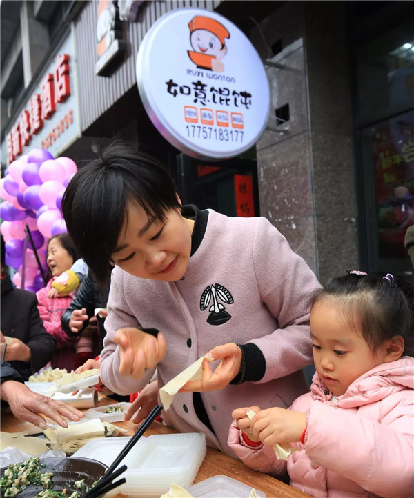 一起包餛飩,在這么多人手里傳來傳去的不止是筷子,更多的是分享與愛。