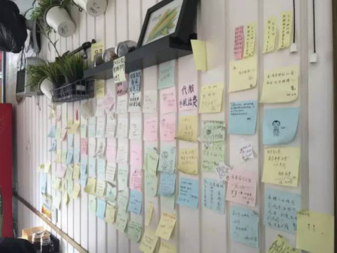 另外,我們店里常備便利貼,鼓勵(lì)顧客留言。初衷是因?yàn)槲覀冎箴Q飩需要時(shí)間,怕顧客等得著急。沒(méi)想到積累了很多老顧客,他們下次來(lái)的時(shí)候,經(jīng)常會(huì)去墻上找自己寫(xiě)的貼紙貼在哪里,還有很多顧客很有才,手繪了很多內(nèi)容。這些都是來(lái)自顧客第一手的點(diǎn)評(píng),有時(shí)候我自己看了也會(huì)覺(jué)得很感動(dòng)。其實(shí),很小的細(xì)節(jié),顧客就會(huì)覺(jué)得你不一樣,就會(huì)覺(jué)得這個(gè)店讓他們很溫馨。